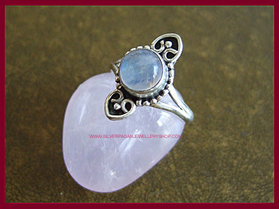 Sterling Silver Planchette Ring set with a Rainbow Moonstone Gemstone